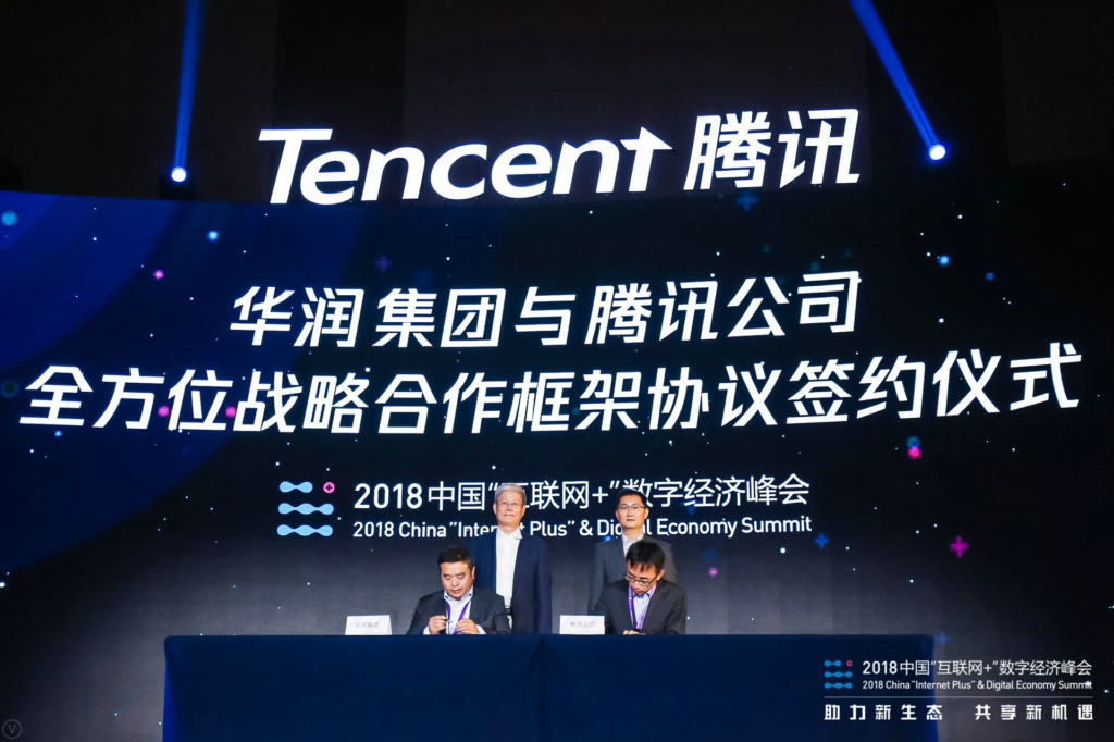 根据协议,华润凭借多年的行业经验,腾讯利用自身移动互联网、大数据和人工智能等新技术的经验优势,将共同推动双方在互联网产业上的深度融合和创新发展,优势互补,实现在智慧零售、智慧城市以及医疗健康等多个领域的产业价值提升,并共同推进在新兴产业和数字经济领域的合作。