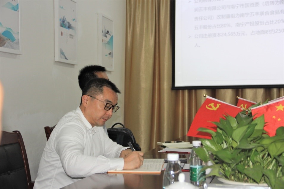 在南宁五丰调研期间,简总首先听取了南宁五丰的工作汇报,就主营业务、经营指标、管理举措等工作与管理团队进行了沟通和交流,重点对渠道拓展及亟待解决的问题给予了指导;随后实地巡检了采购部、营销部、屠宰车间、动力车间等工作场所,简总对工厂日常管理、安全生产等方面的工作提出了指导与要求。