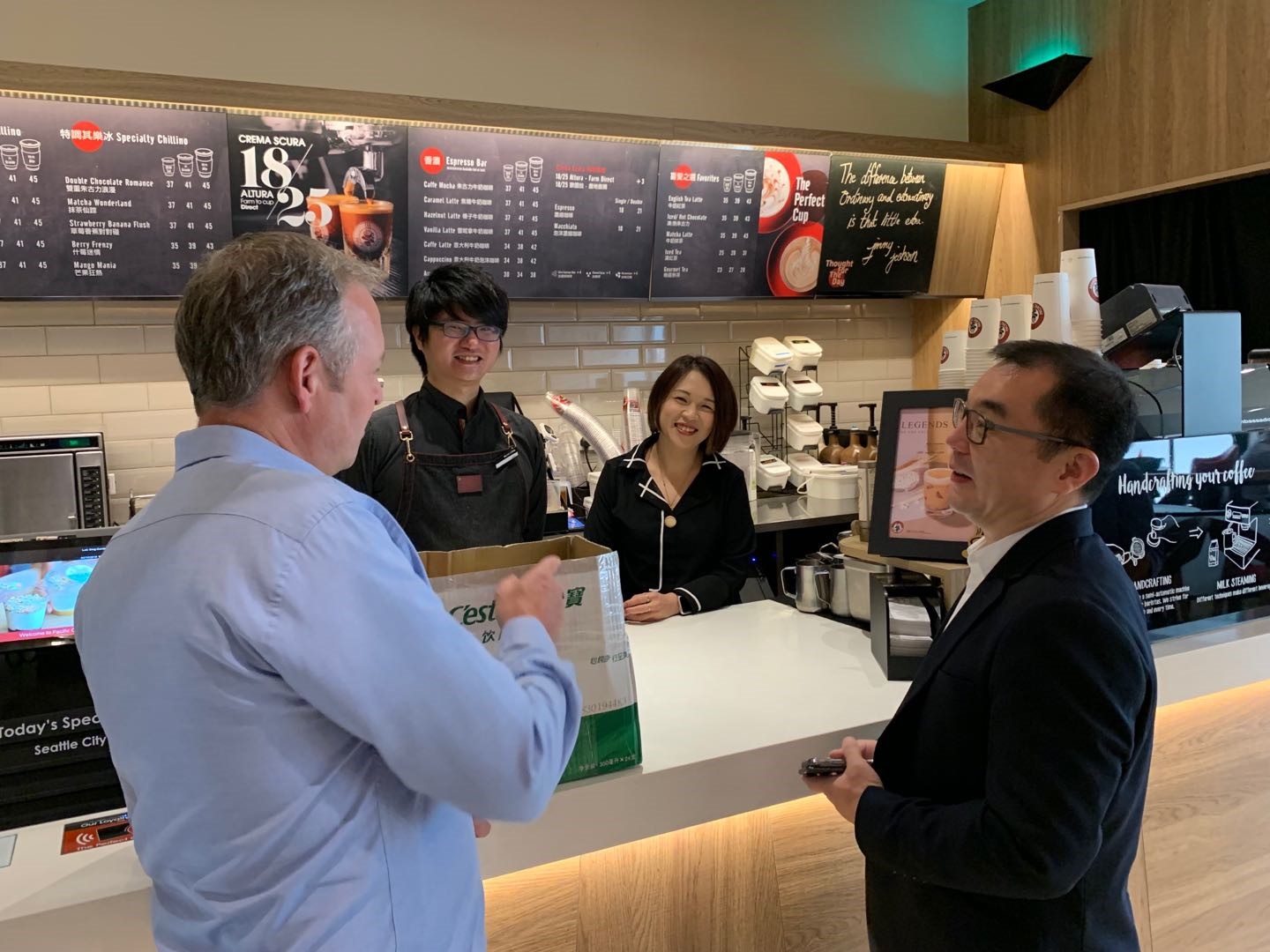 10月4日一早,华润创业CEO简易带队到华创物业、太平洋咖啡(PCC)门店进行视察及慰问前线员工,华创副总裁、首席财务官黎宝声参加视察慰问,华创物业及太平洋咖啡相关负责同事陪同。