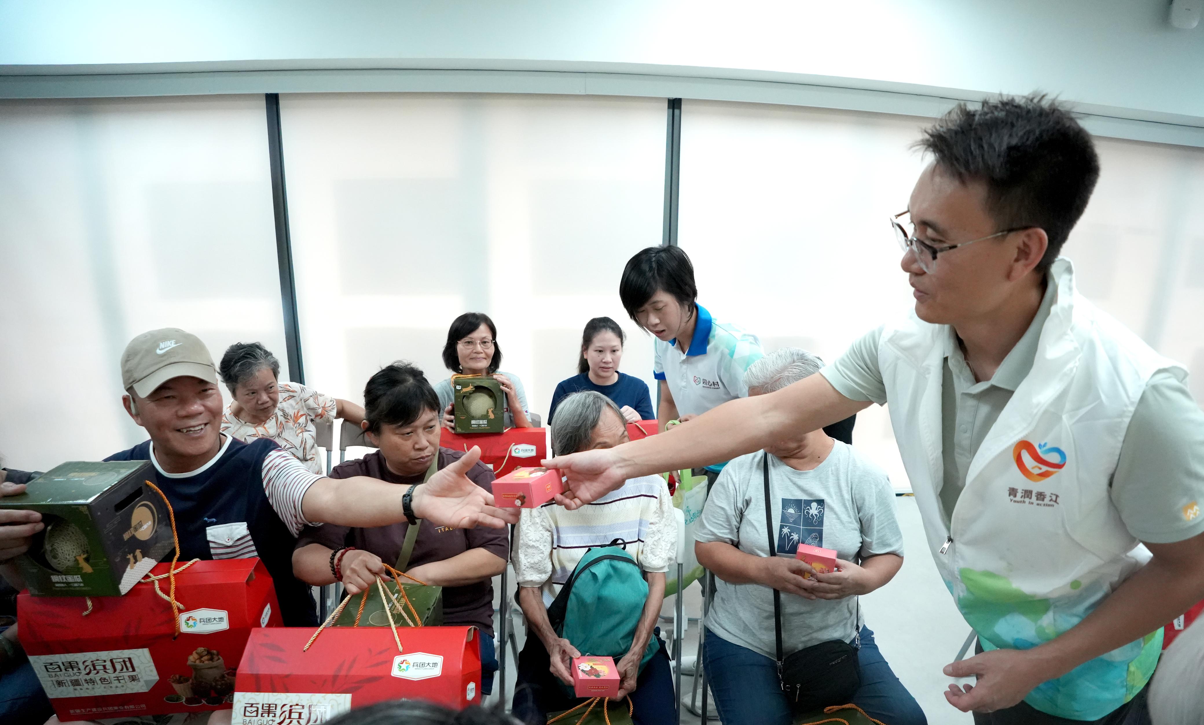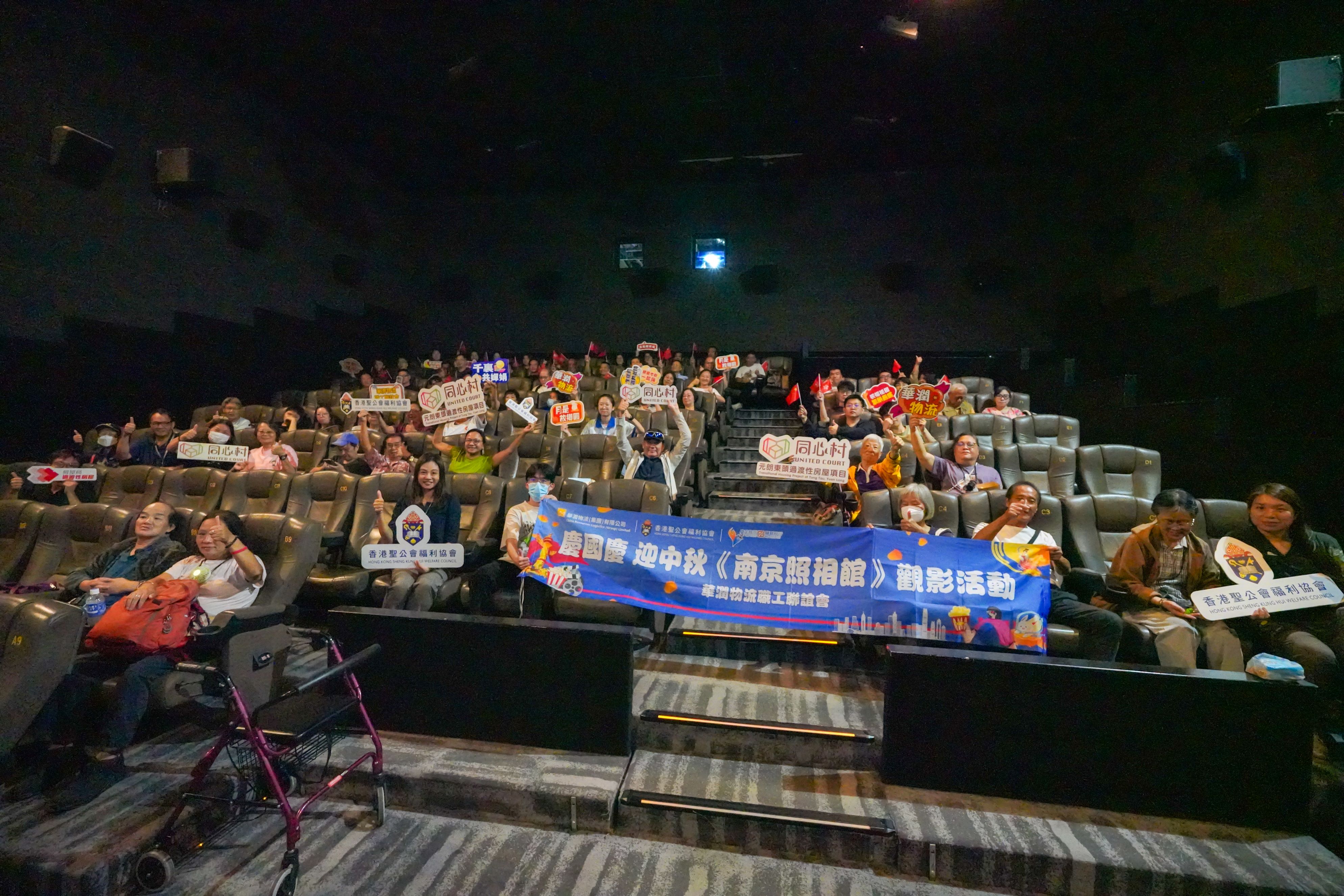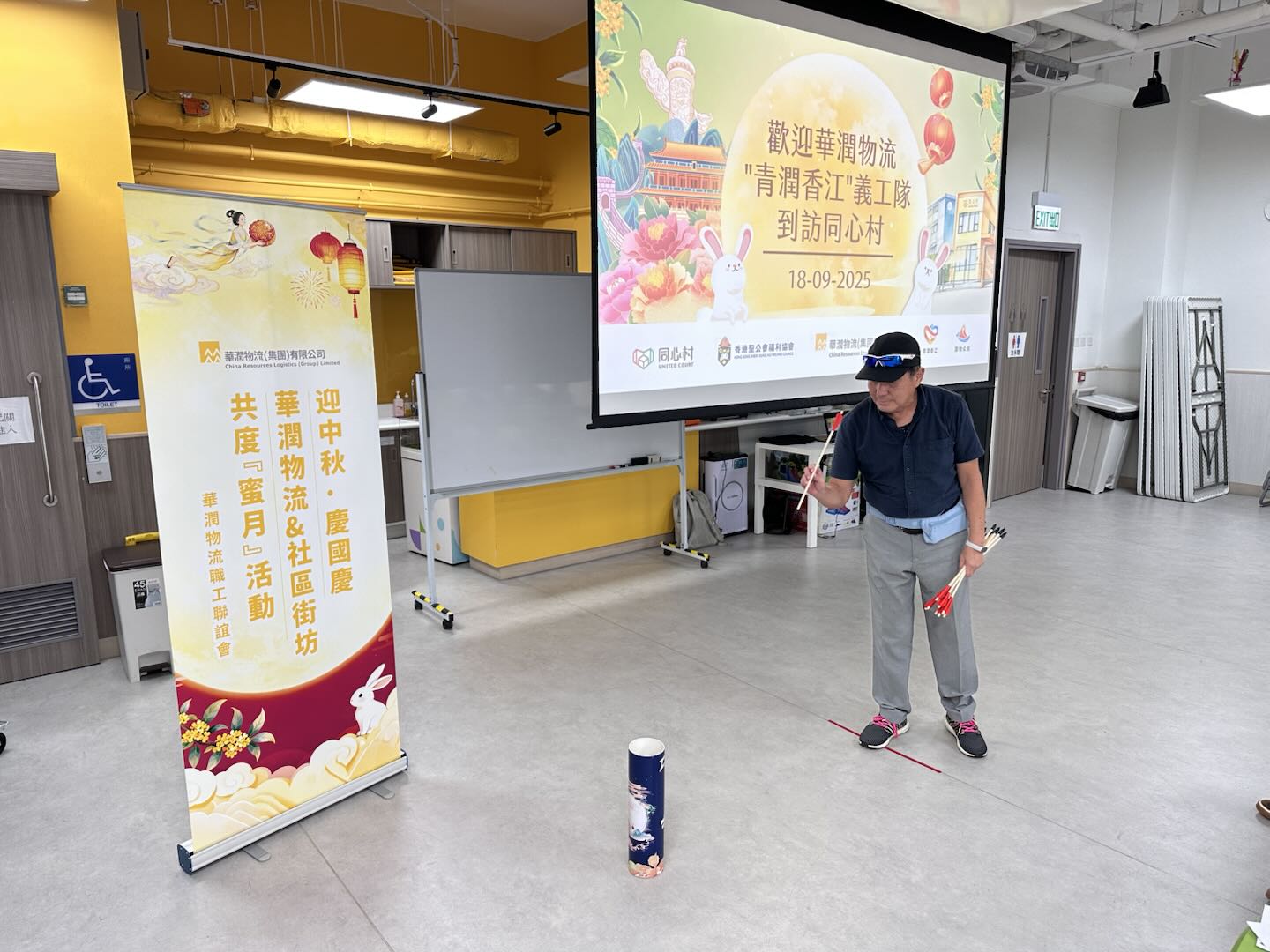 活动中,义工队参观了项目服务设施,深入了解香港房屋政策、走访慰问独居长者及单亲家庭,赠送节日物资。活动现场设置了中秋传统“投壶”游戏体验环节,增强居民对传统文化的认知,并同步向居民们发放了月饼、蜜瓜等寓意团圆的节日礼包,祝愿居民们中秋快乐,花好月圆。此后,义工队组织同心村居民与华润物流员工共同观看了电影《南京照相馆》,进一步凝聚家国情怀。最后,华润物流负责人向街坊介绍了华润物流与香港同呼吸共命运的发展历程,并送上节日祝福。