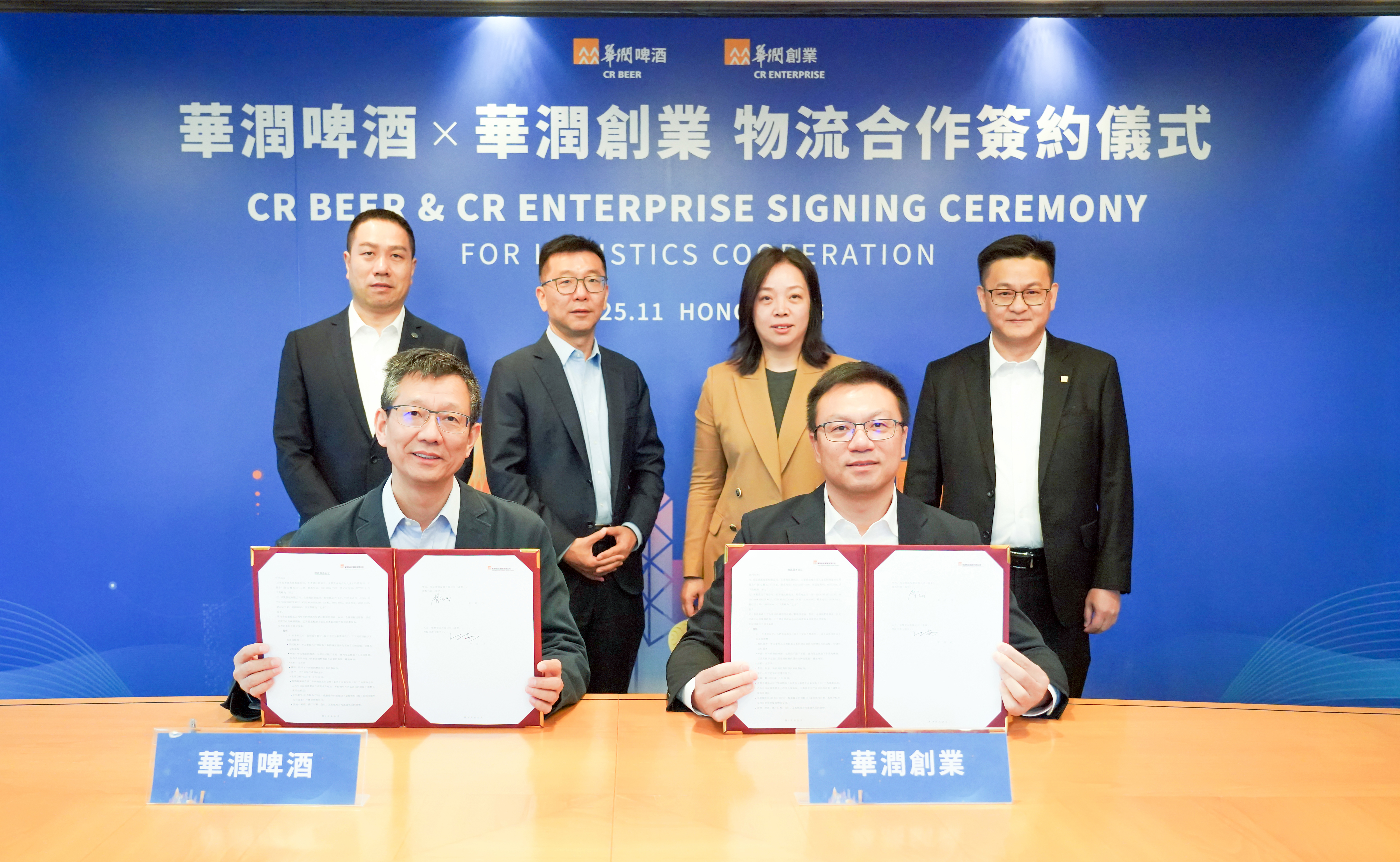 11月27日,华润创业与华润啤酒在香港华润大厦举行物流合作签约仪式,华润啤酒董事会主席赵春武,华润啤酒副总裁、华润雪花总经理李小冬,华润雪花营运中心总经理曹志民,华润创业董事长程洁、副总裁褚卓伦,华润物流负责人等出席仪式。