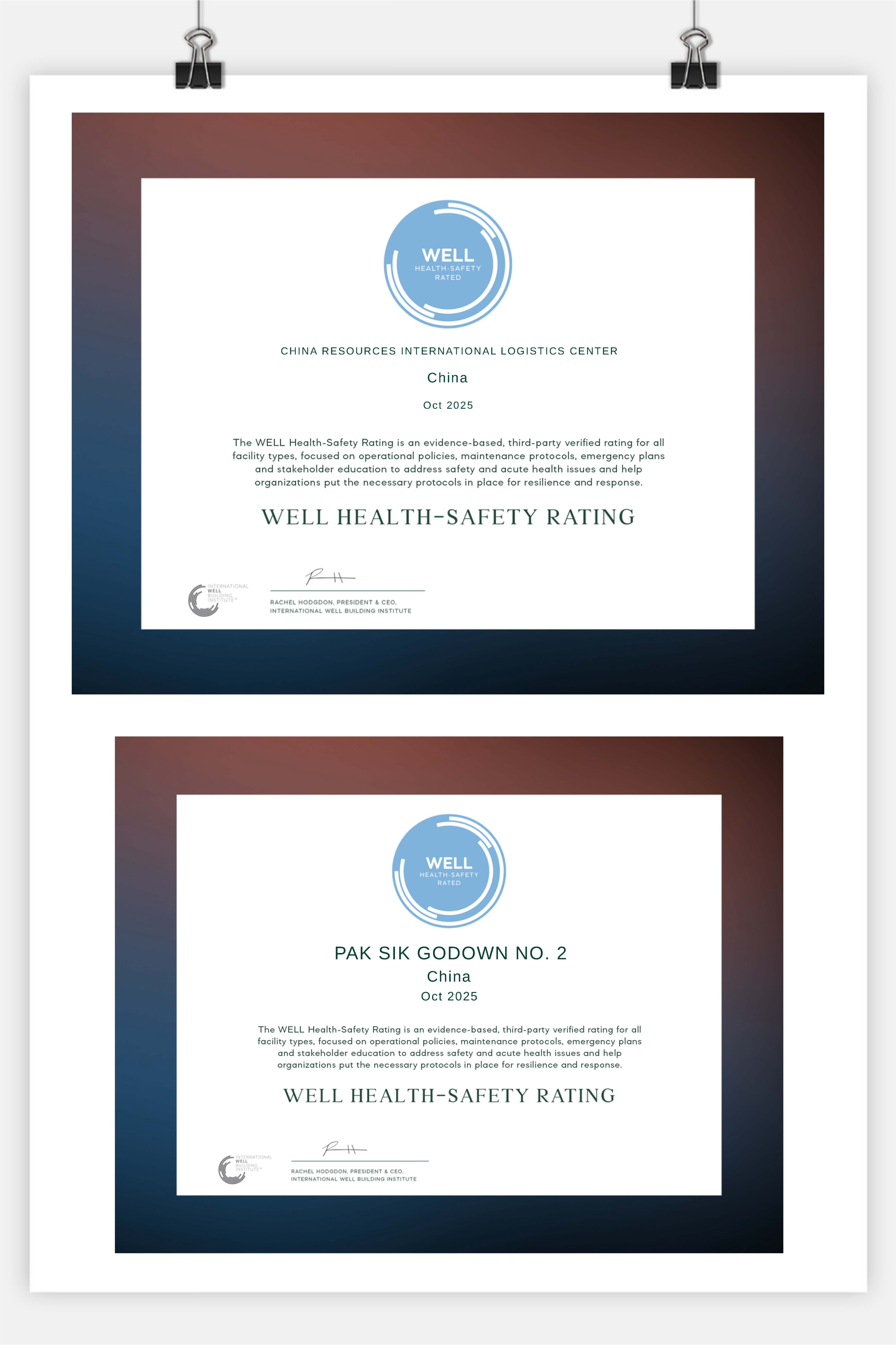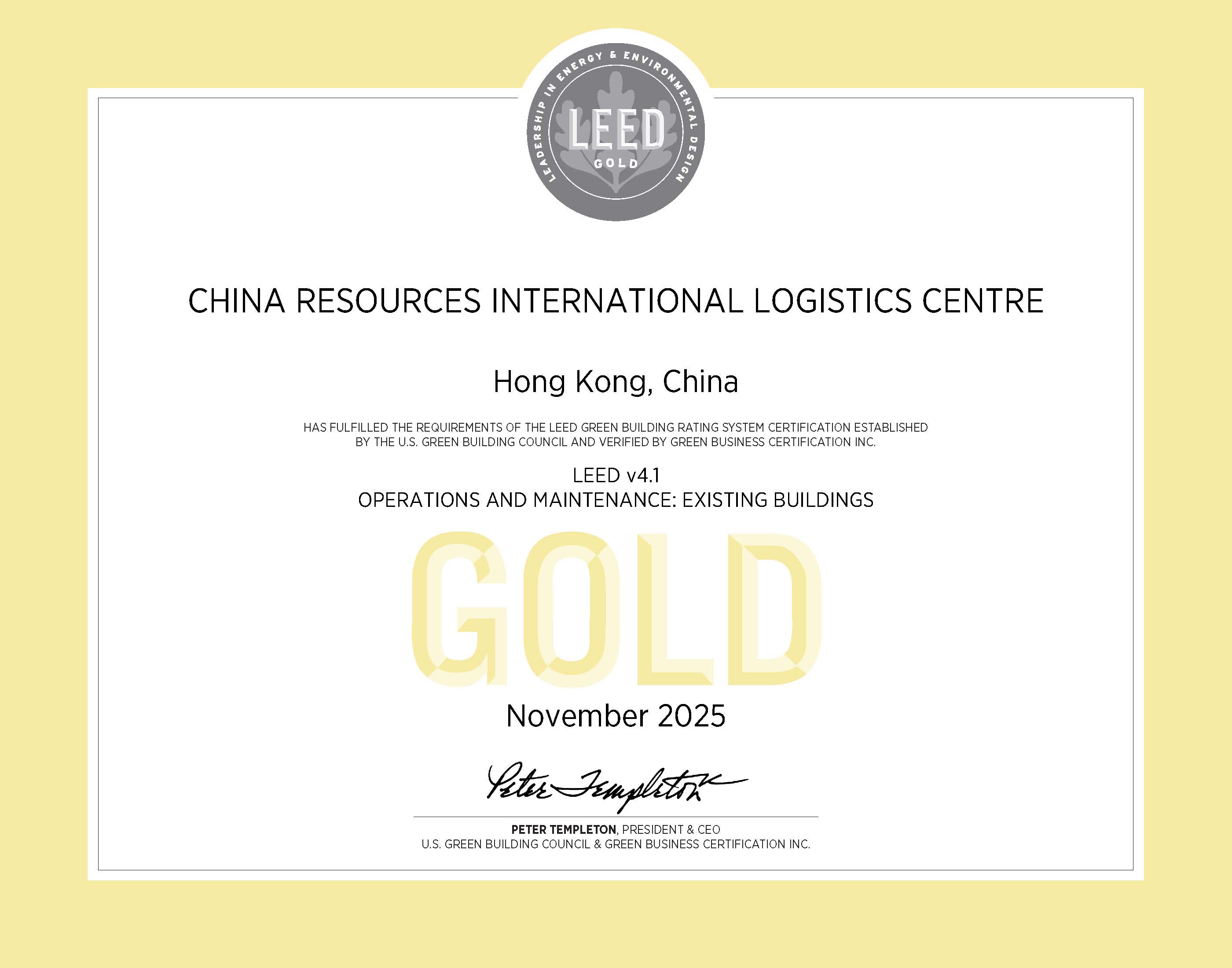 近日,华润物流旗下华润国际物流中心成功获得能源与环境设计先锋(LEED)金级认证、WELL健康-安全评级认证,成为香港第五栋同时拥有此两项认证的仓库物业,标志着其在环保能源设计及绿色健康安全领域均达到领先水平。