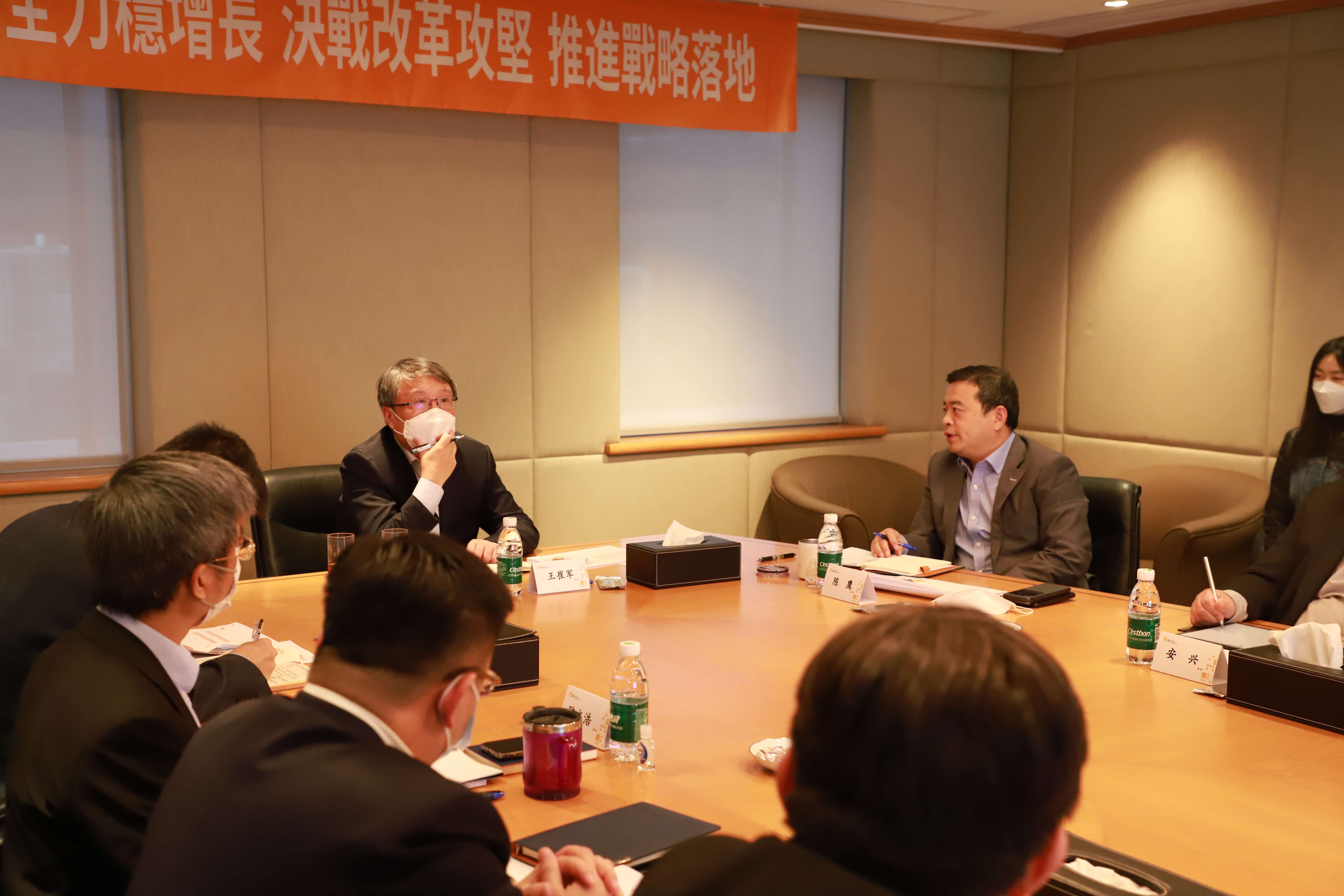 调研中,王崔军总经理听取了华润创业目前经营、产业投资情况及下一阶段重点工作情况汇报。王崔军总经理对华润创业推动全新“十四五”战略落地,特别是发展香港业务工作,给予充分肯定,并提出五点要求:一是要把学习贯彻二十大精神作为当前和今后一个时期的首要政治任务,深刻领会,细化落实举措,融入自身改革发展之中。二是要推动业务持续增长,既要做强做大传统优势业务,也要承担好为集团投资孵化新产业的使命。三是要平衡好规模、质量和效益,坚持速度与质量并重、规模与效益并举,通过有效组织变革提质增效,推动高质量发展。四是要做好专业人才培养储备,推动华创香港专业人才赴内地交流锻炼。五是要加强对香港的宏观战略研究,为集团重塑香港业务提出更多建设性建议。