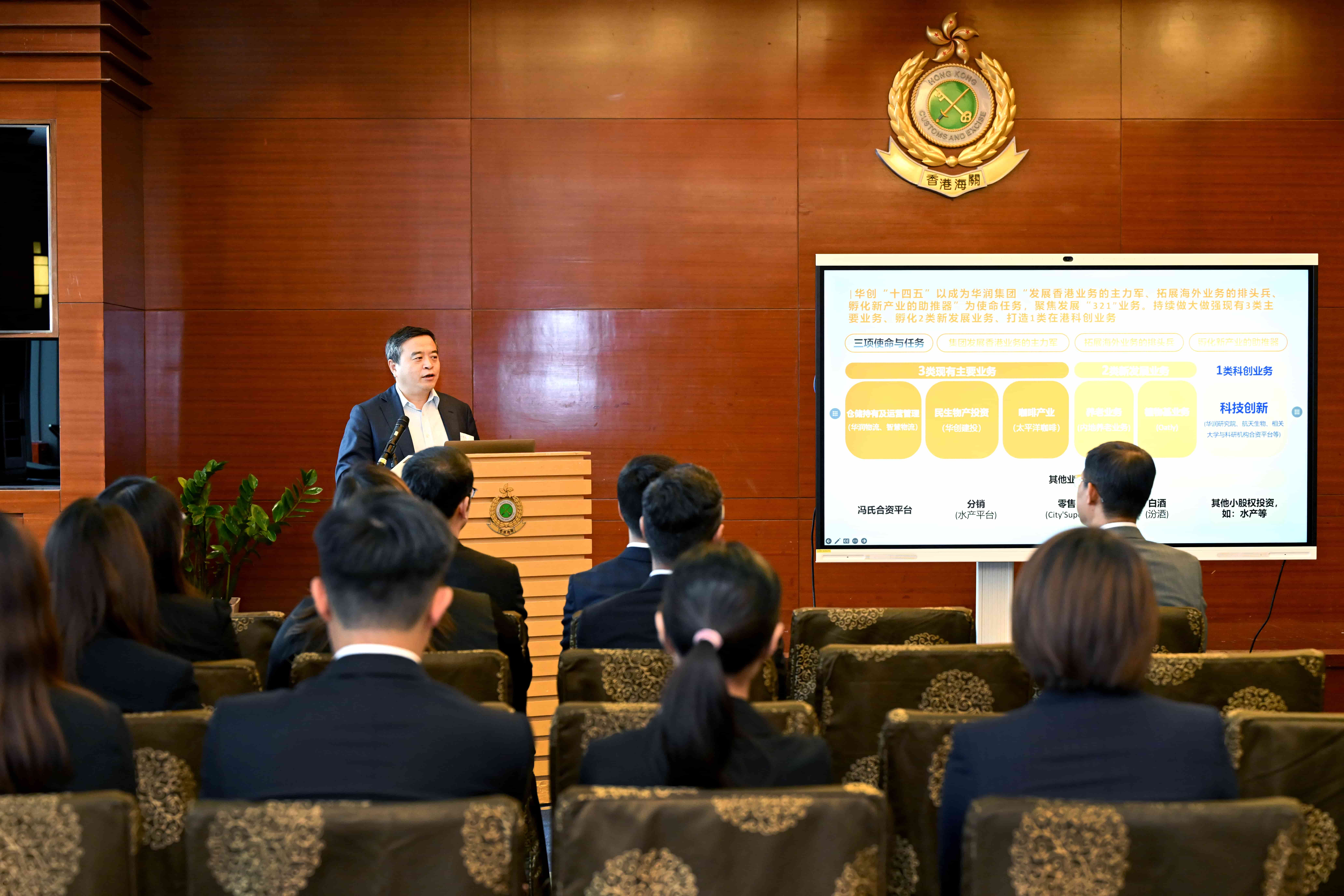 香港海关副关长陈子达、副关长黎流柏,助理关长吴洁贞、助理关长许剑及相关负责人,华创副总裁冯凯、钱健、支喆、李楠、褚卓伦,华创办公室、科技发展部及华润物流、水产平台等相关人员陪同参加活动。