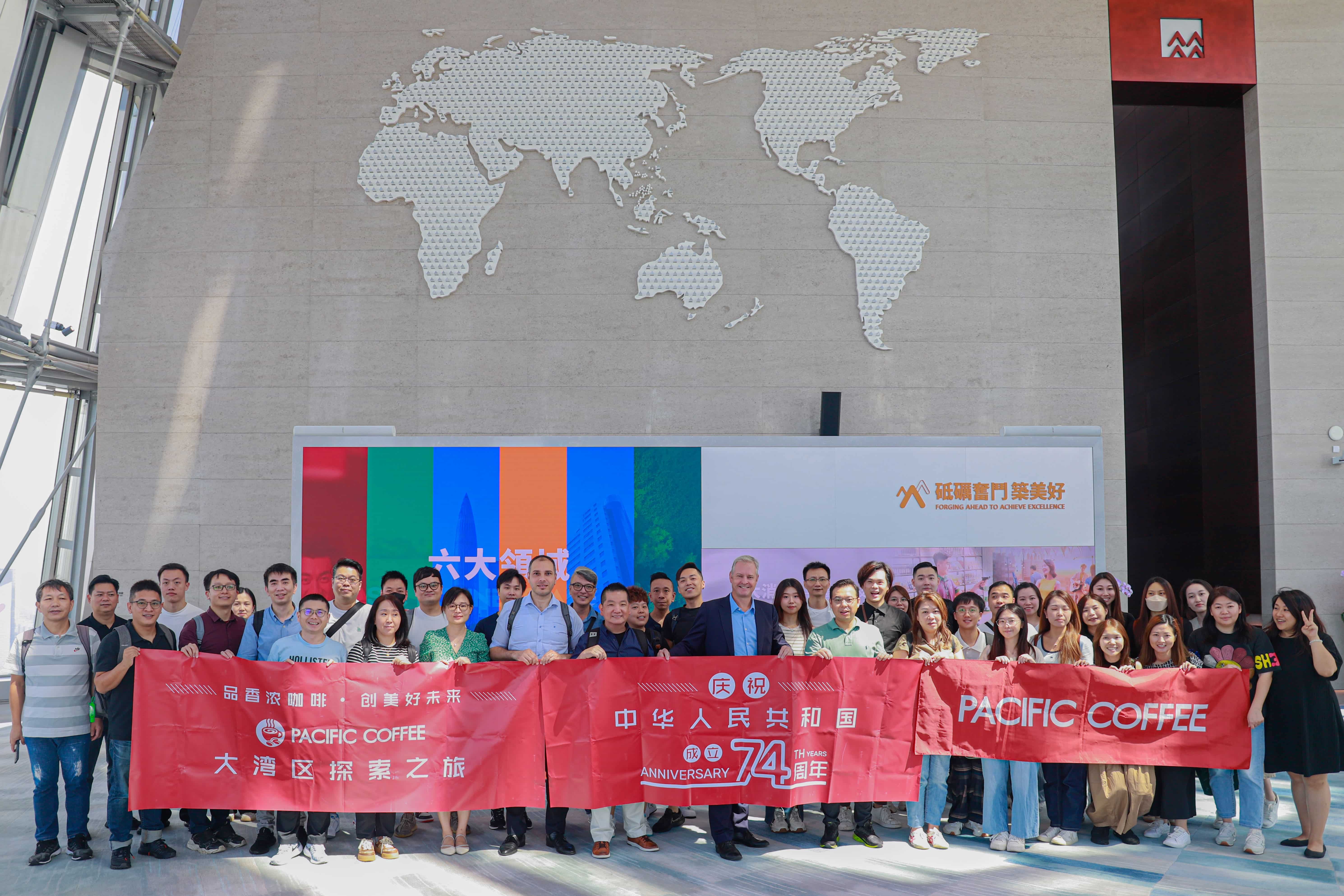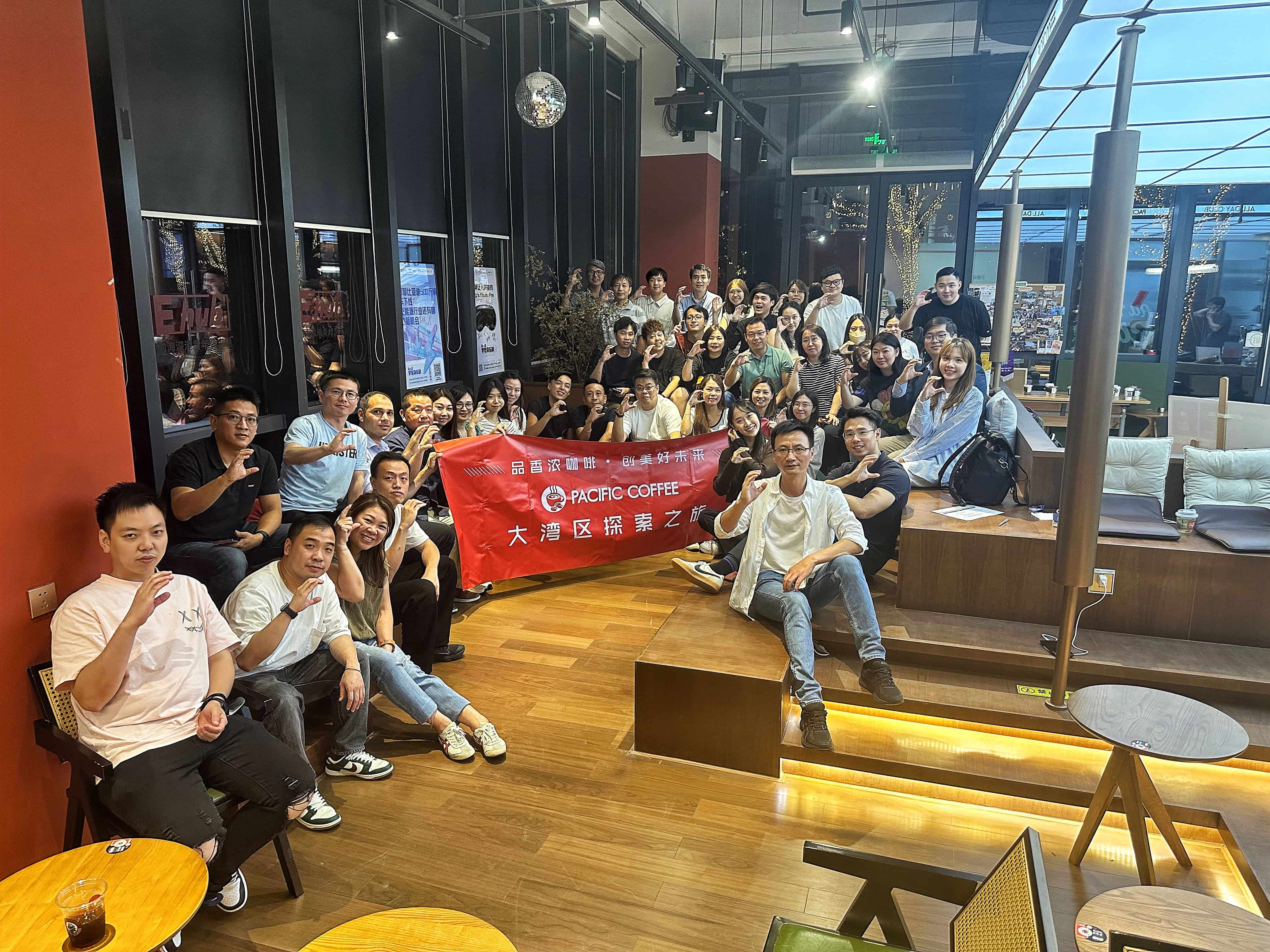 9月27日,太平洋咖啡(香港及海外)组织香港青年员工前往大湾区开展 “品香浓咖啡·创美好未来”大湾区探索之旅活动。活动旨在帮助香港青年更好地了解祖国发展、培育香港青年的爱国情怀,并通过向内地咖啡、轻餐饮行业竞争品牌调研学习,促进在港员工了解内地同行业竞争态势,借鉴内地同行业成功经验。本次活动参加人员包括太平洋咖啡管理团队全体成员、各部门核心骨干、前线区域经理及员工合计40余人。